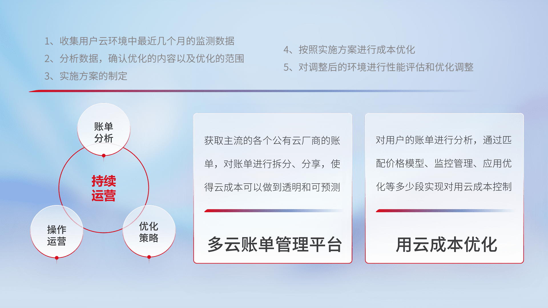 运用智能化工具分析云资源,,,,提供日常费用可视化工具,,自动账单拆分,,,,成本优化云上费用,,,,降本增效。。。。